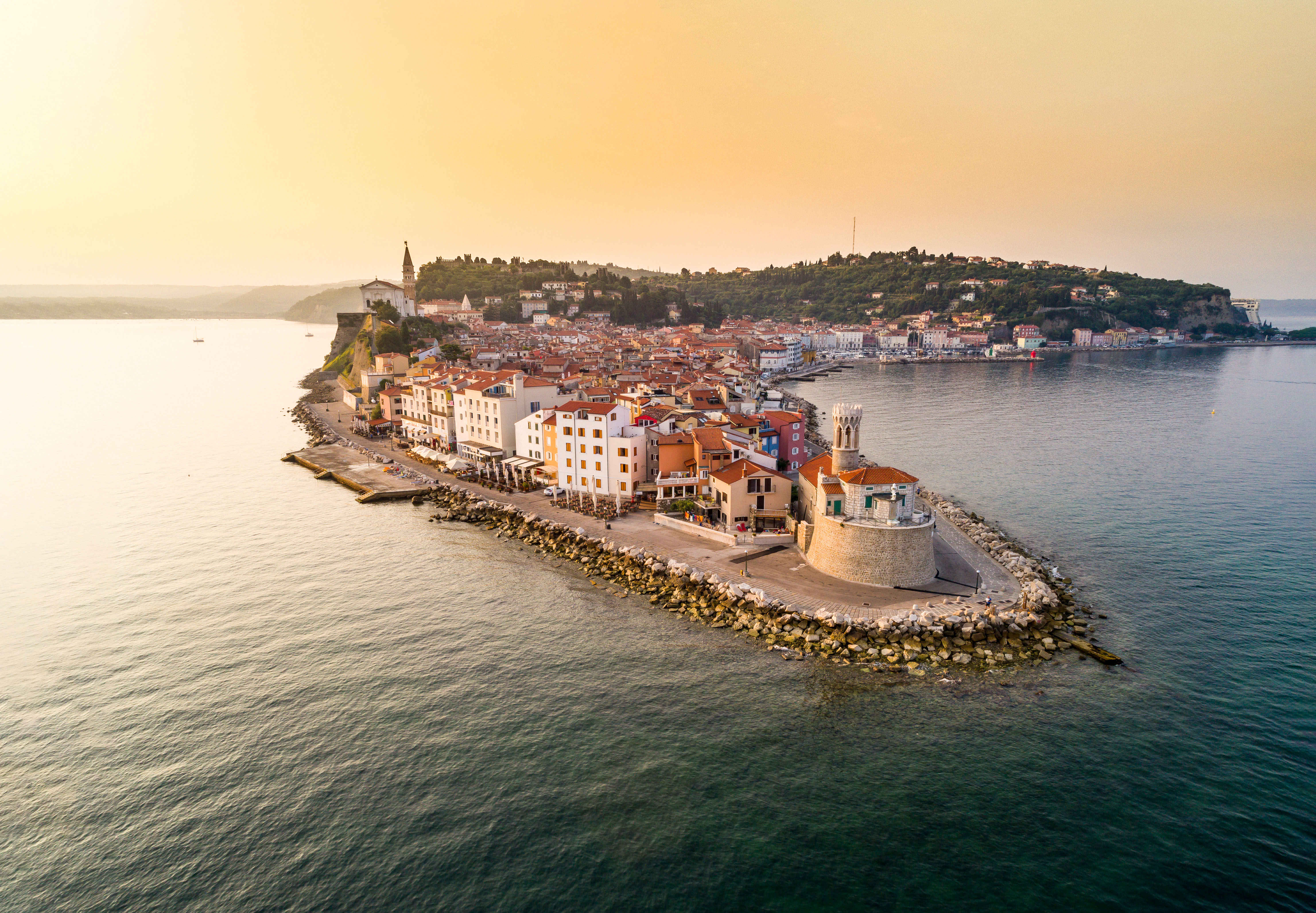 Sprehodita se od trga do cerkve, od koder se razprostira pogled na Piran, Italijo in Hrvaško. Pot zaokrožite še ob klifu, ki bo vaju vodil do Fiese. Lepo urejena pešpot in čudoviti razgledi na zaliv ter italijansko obalo so ideja za še en romantičen izlet.