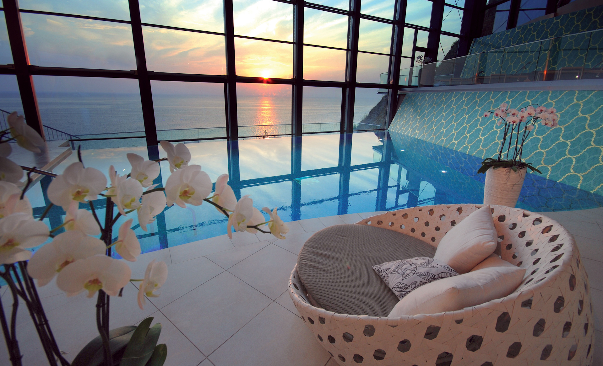 • Neomejeno kopanje v panoramskem notranjem hotelskem bazenu z ogrevano morsko vodo