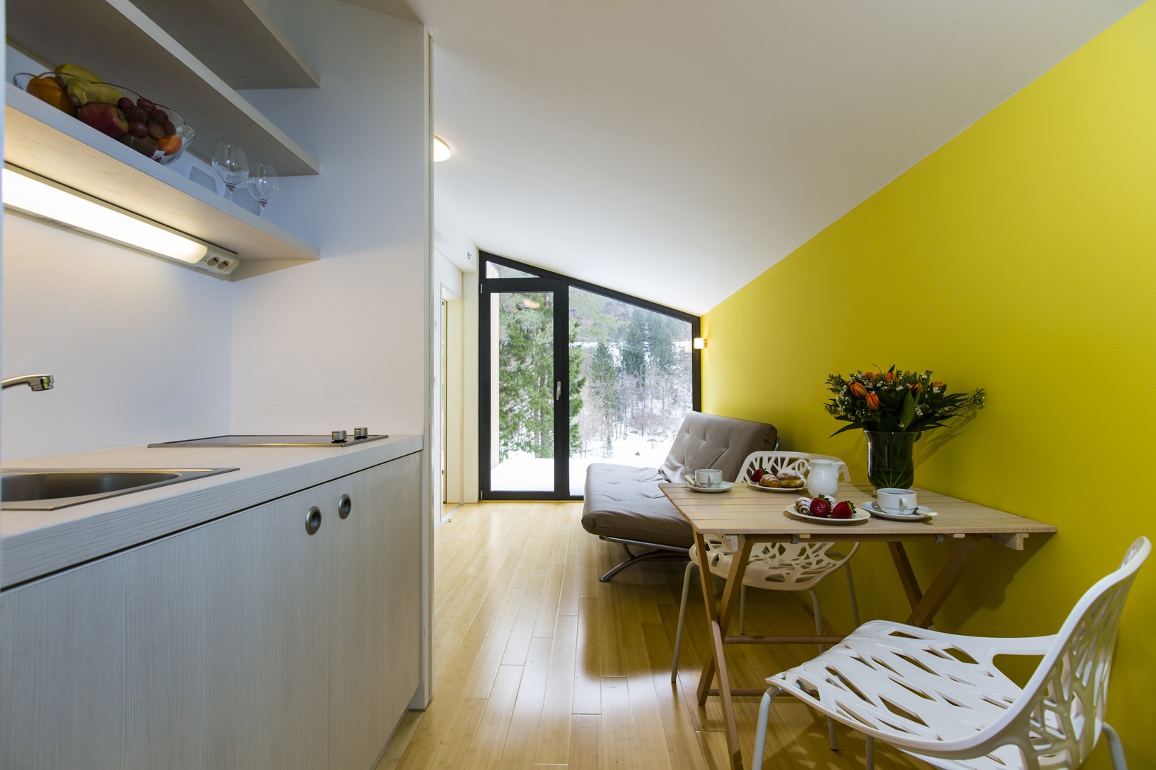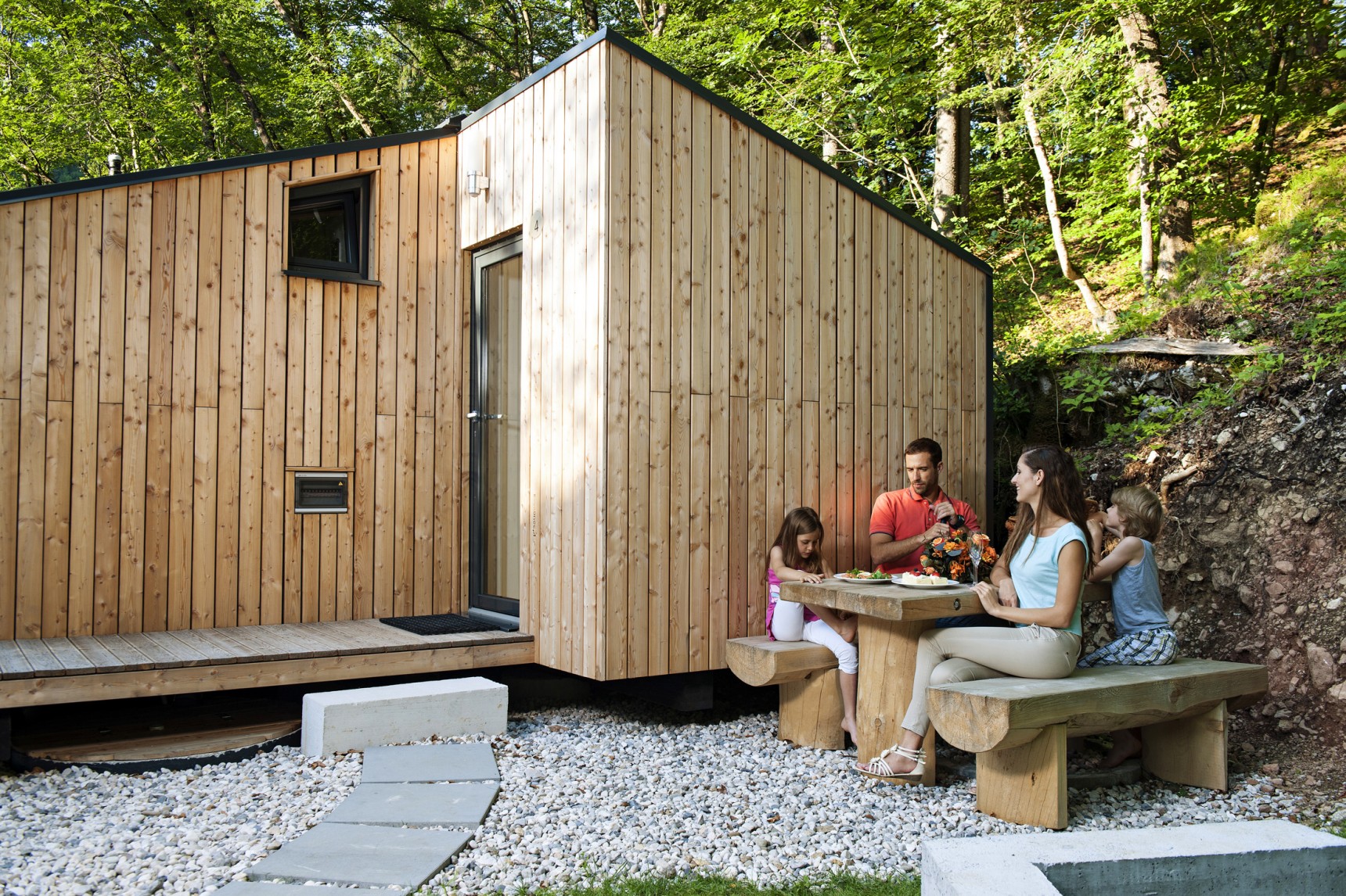 Sodobno in estetsko oblikovane družinske mobilne hišice na robu gozda navdušujejo starše in otroke. Malce dvignjene nad okolico ponujajo čudovit razgled, gostom pa omogočajo vso zasebnost in udobje. Hišice so zgrajene iz lesa in naravnih materialov, ki dihajo. Veliko stekleno panoramsko okno pa daje občutek prostornosti in bivanja v naravi. Hišice so obdane z zelenjem in vam v poletnih mesecih ponujajo prijetno senco in razgled, ki vas bo zagotovo očaral.