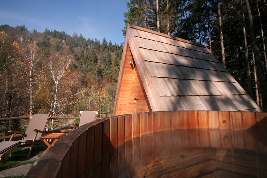 Ljubke, majhne, lesene hišice so idealna izbira, ko želite samo v dvoje malce pobegniti pred norijo vsakodnevne rutine. Spanje v naravi tu dobi nov pomen. Hiške so zgrajene iz ekološkega neobdelanega macesnovega lesa in krite z macesnovimi skodlami. Udobna postelja je narejena iz povsem naravnih materialov. V hišici diši po lesu. Pred hišico vas vabijo lepo urejena okolica s tipičnim alpskim rastlinjem, lesena kad z ogrevanjem na drva in udobni leseni ležalniki.