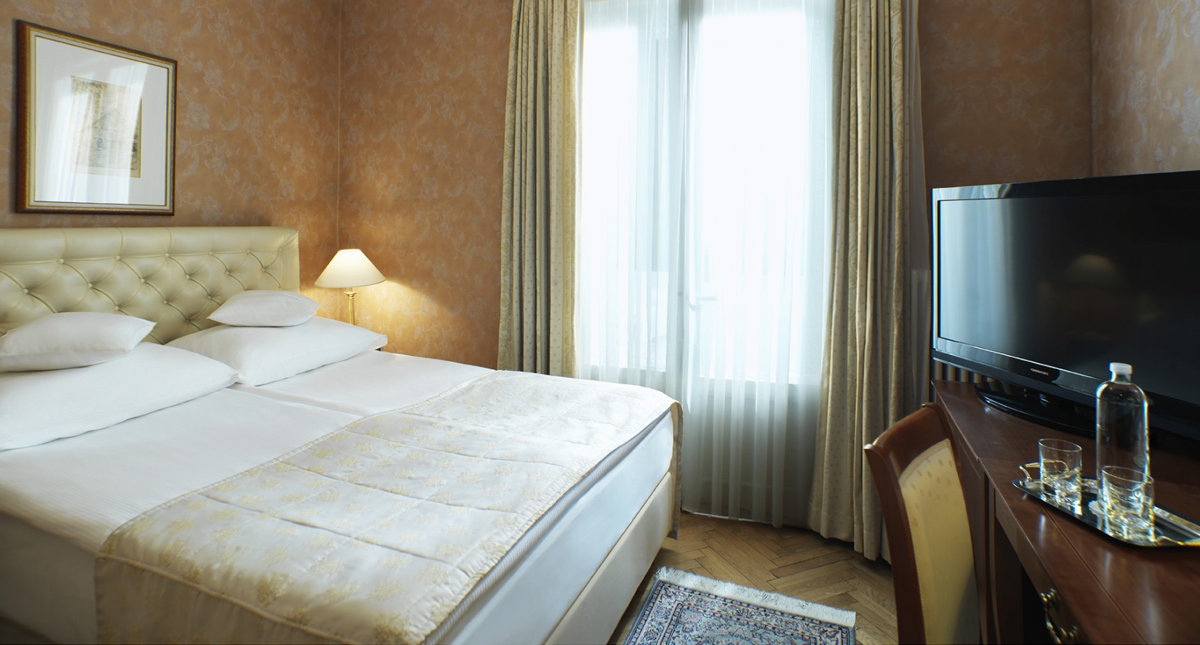 Udobna soba z balkonom za samostojne goste, ki si želijo predvsem miru in kakovostnega počitka. V sobi (13 - 15 m2) je ležišče širine 140 do 200 cm, kopalnica s tušem in WC-jem ter pisalna miza.