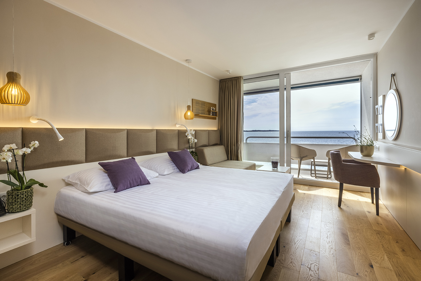 V Hotelu Histrion lahko izbirate med sobami oljke, sivke in morja, ki jih med dopustovanjem na slovenski Obali srečujemo na vsakem koraku. Vsaka med njimi v pastelnih, naravnih tonih modre, vijolične in zelene, s pridihom Istre z razgledi, ki vam vzamejo sapo, ponuja oazo za popolni morski odklop od vsakdana.