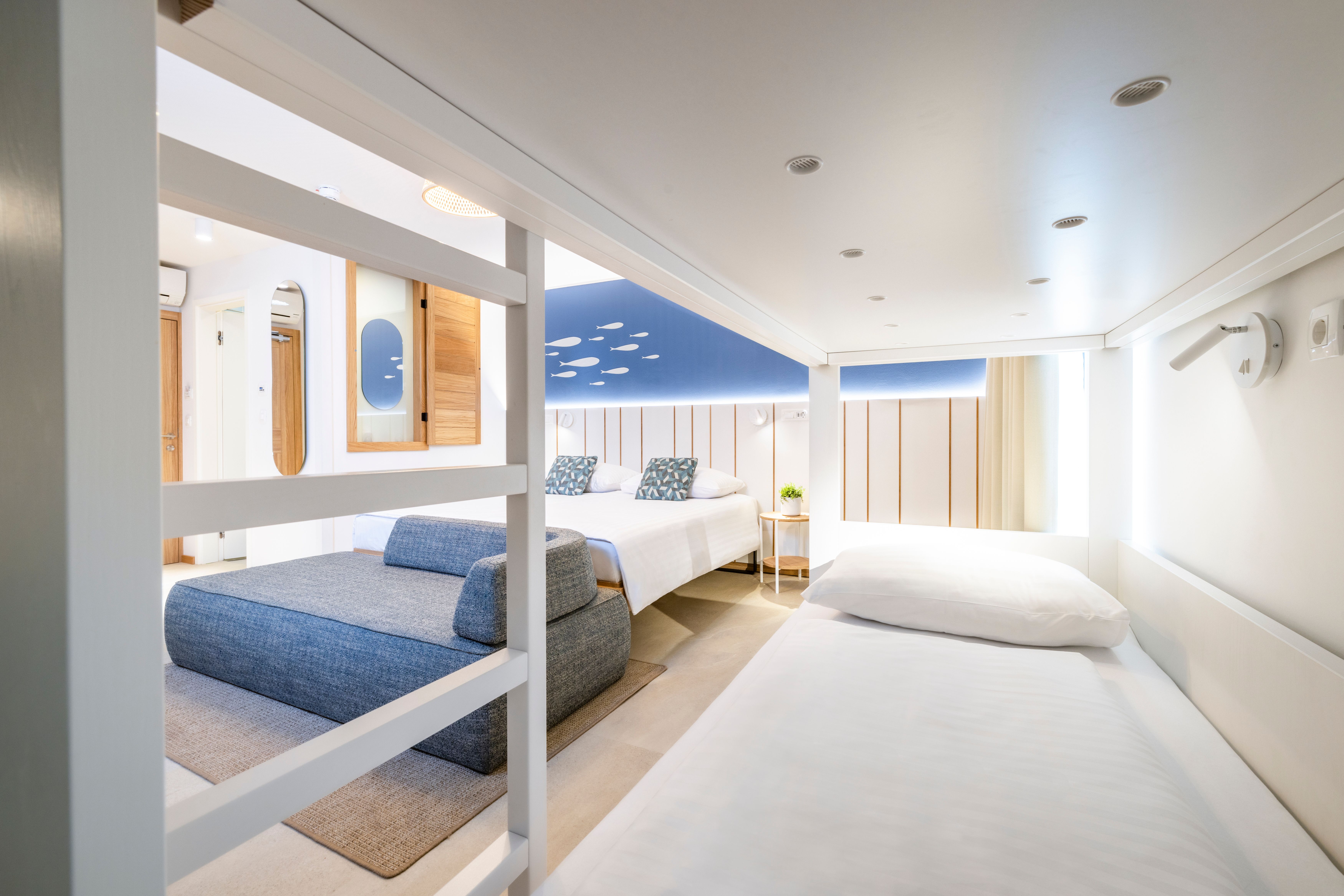 Ponudba sobe: klimatska naprava, kabelska TV, telefon, miza, kopalnica s tušem, sušilec za lase, balkon, mini bar. Velikost sobe: 30 m2 Velikost ležišča: 1 x zakonska postelja 180 x 200 cm + 3 x dodatno ležišče 80 x 190 cm