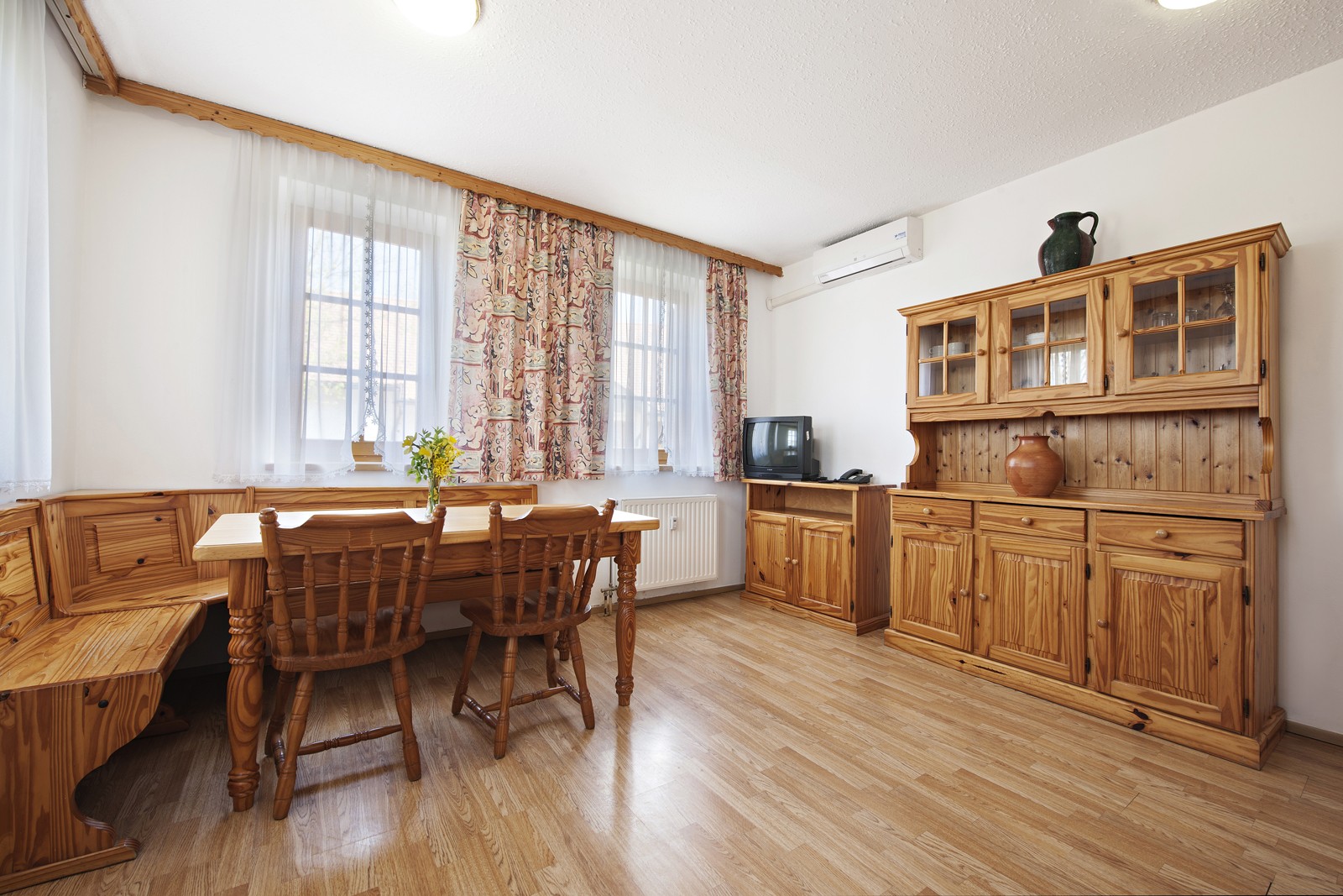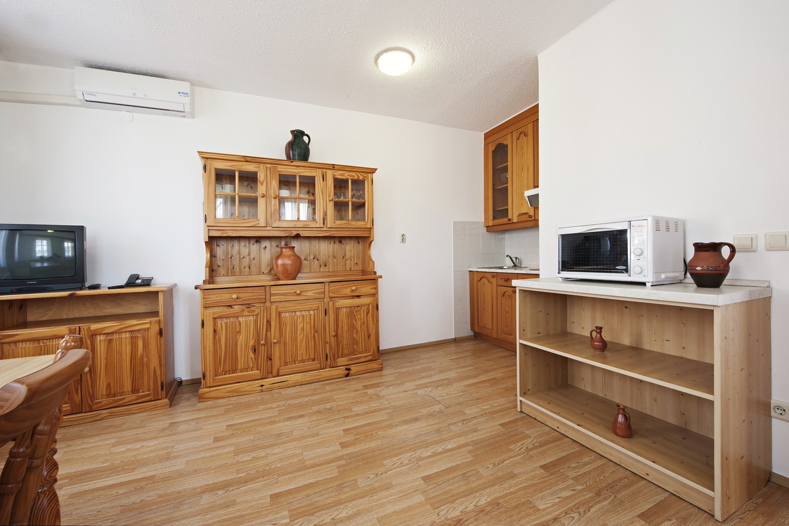Prostoren in udoben apartma za štiri osebe z zakonsko posteljo 200 x 160 v zgornjem nadstropju in dodatnim ležiščem v prostoru, ki se nahaja v zgornjem delu apartmaja. V apartmaju (70,00m2) je kopalnica s tušem in WC-jem, kuhinjska niša in jedilna miza v spodnjem delu apartmaja ter zunanja terasa.