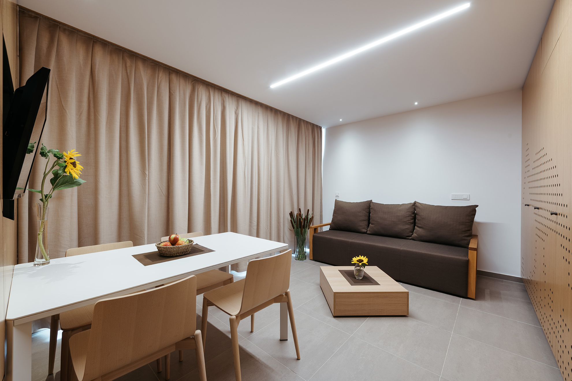 Hišica za pet oseb (79,50 m2) z enim ležiščem širine 180 cm in ležiščem širine 180 cm v zgornjem nadstropju (mansarda), ter dodatnim ležiščem (dvosed) s širino 140 cm v pritličju. V hišici je kopalnica s tušem in WC-jem, jedilna miza in raztegljiv trosed. Pred hiško je tudi urejena terasa.